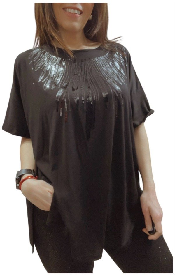 Remeron Lentejuelas Bordadas Oversize Amplios y Largos - Negro TRANSF 29.000