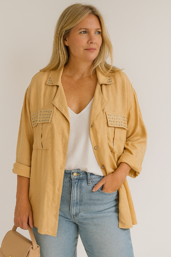 Camisas Algodon con Tachitas Plateadas Amplias y Frescas Ideales para usar abiertas
