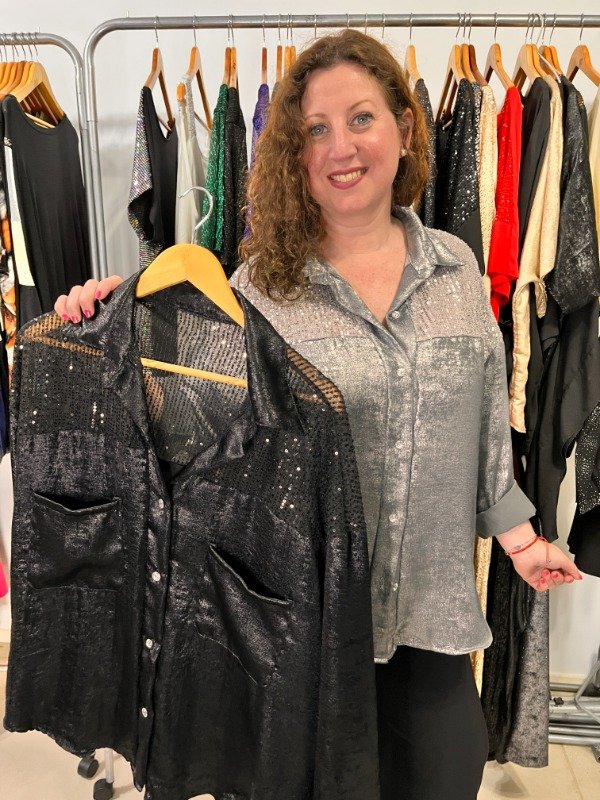 Camisas de Diseño Metalizadas Combinadas con Lentejuelas Super Amplias