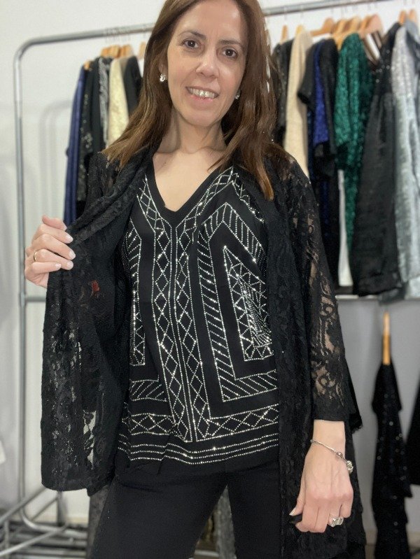 Sacos Negros Encaje Amplios y Mangas Amplias - Mangas Amplias 3/4