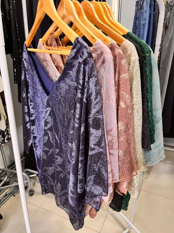 💣 Blusas Importada Metalizada Cuello en V - Forrada - Amplia