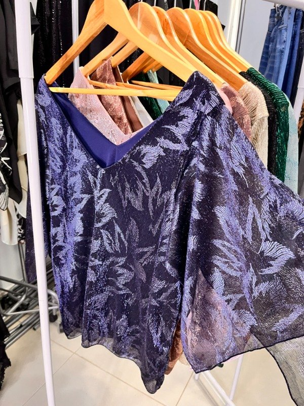 Blusa de Gasa Metalizada Amplia 59.000 Transf Superpuesta Cuello V - Azul Noche