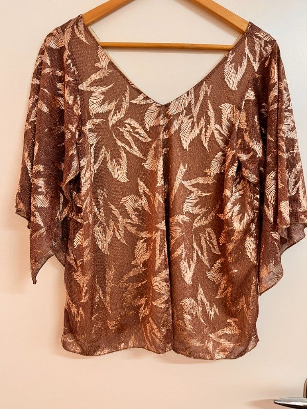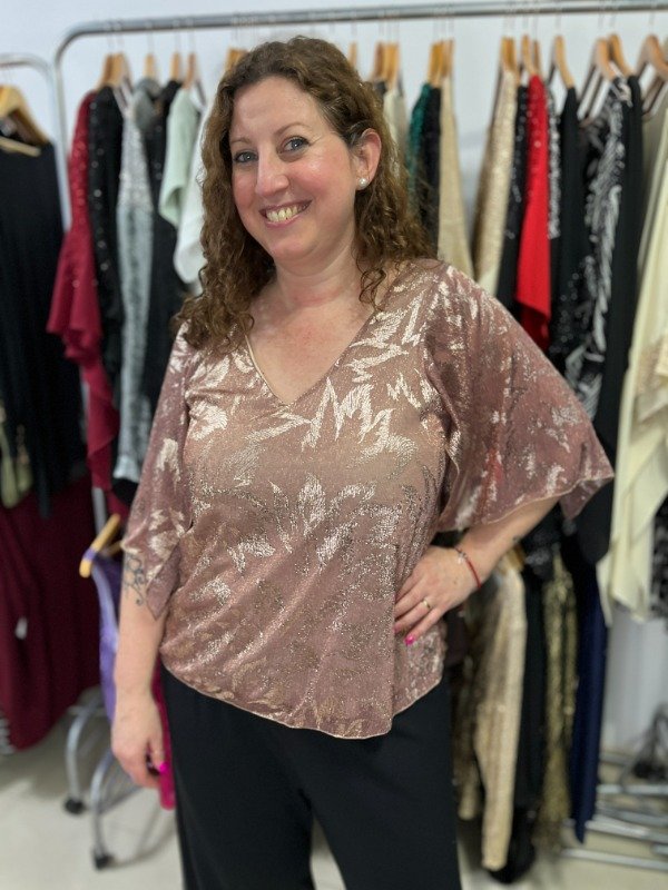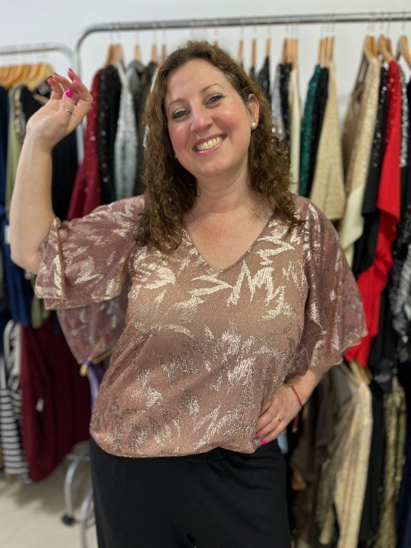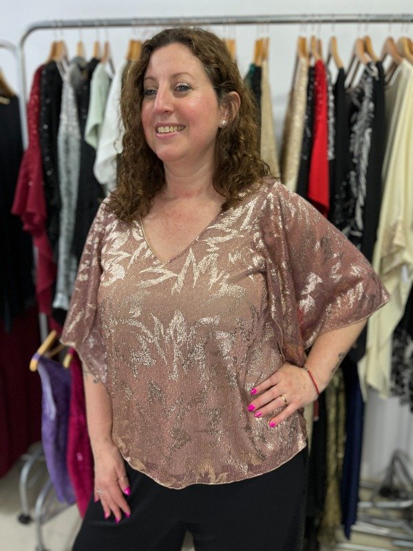 Blusas Importada Metalizada Cuello en V - Forrada - Amplia - Dorado Rosé
