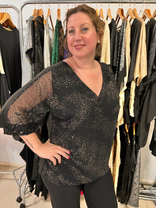 Blusa Gasa Superpuesta a con Lentejuelas - Mangas 3/4 *** DISPONIBLE SOLO CON LETENJUELAS NEGRAS EN MANGAS