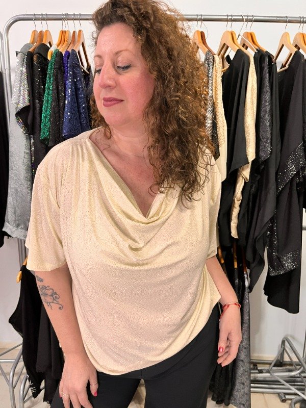 Blusa Glitter Cuello Volcado