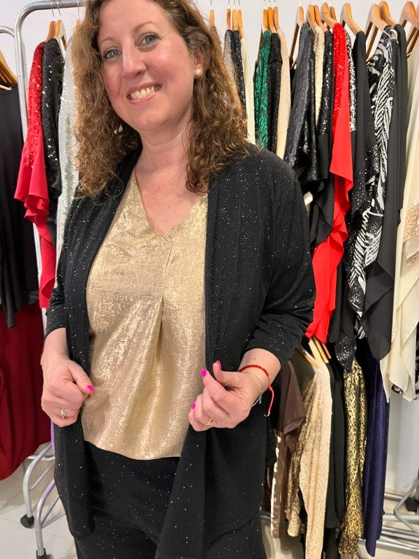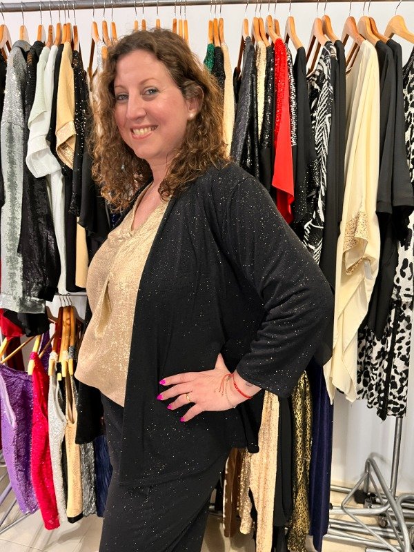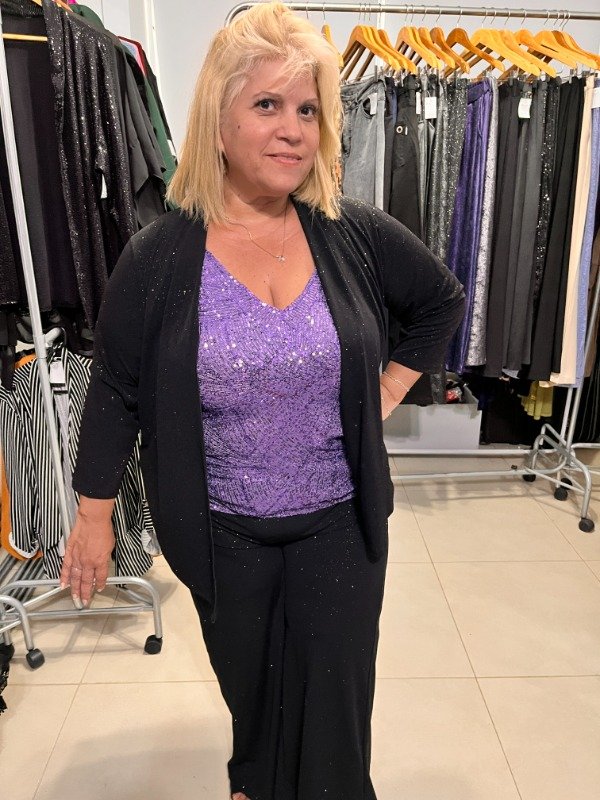 Sacos Negros GLitter Spolverinos - Mangas 3/4 + Palazzo Negro Glitter Cintura Super Elastizada hasta 140 cm cadera