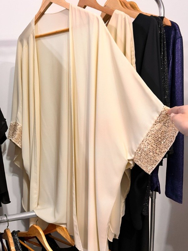 Spolverino de Gasa con Lentejuelas en Mangas - Mangas Amplias 3/4 super grandes