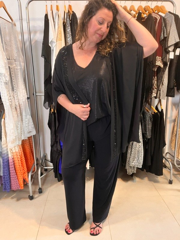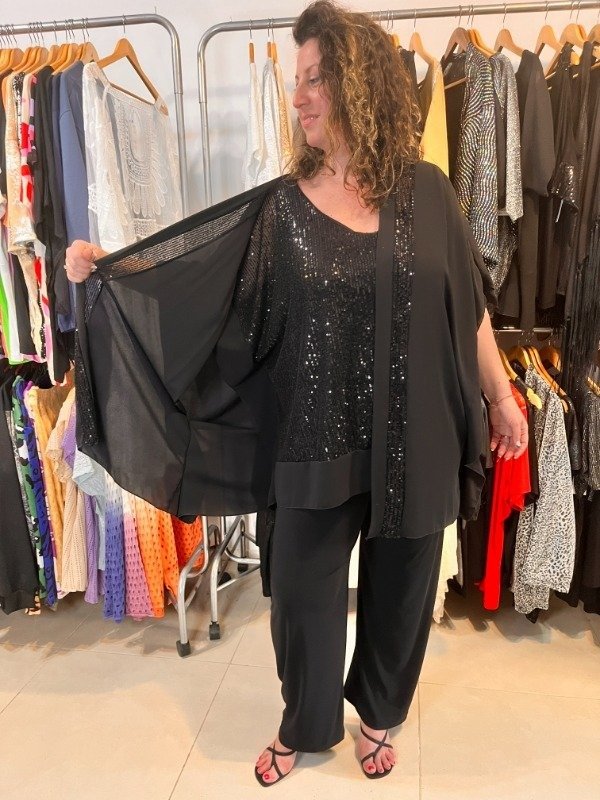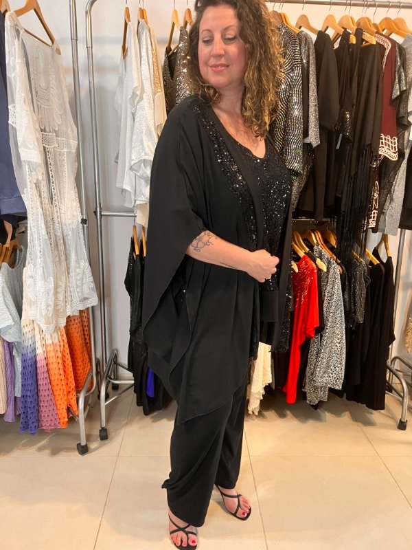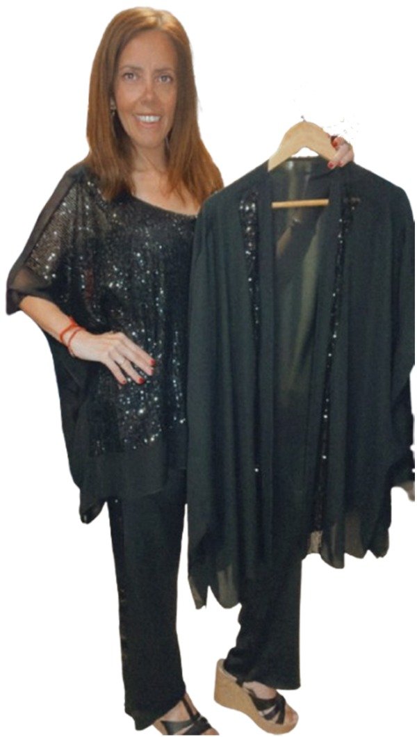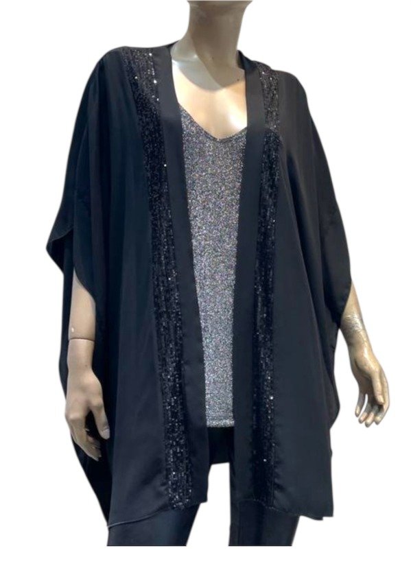 Spolverino de Gasa con Lentejuelas Negras- Mangas Amplias 3/4 super grandes
