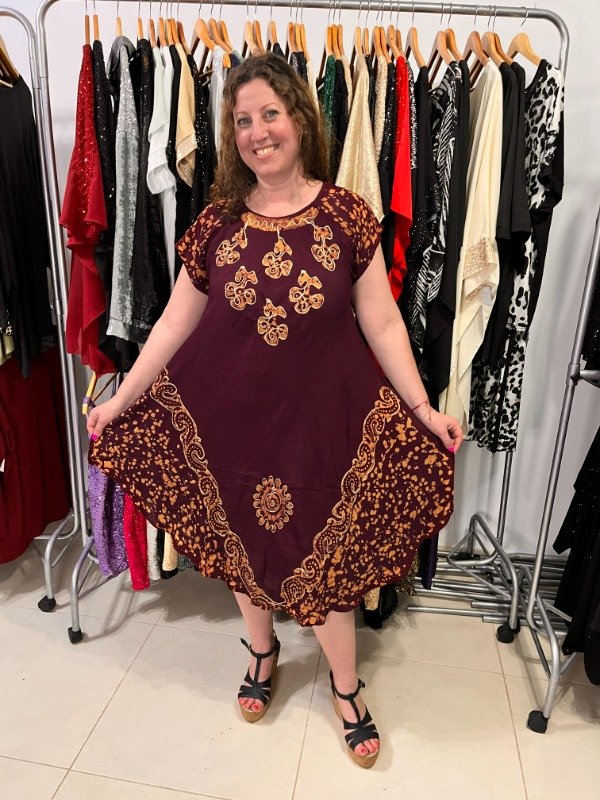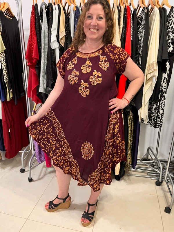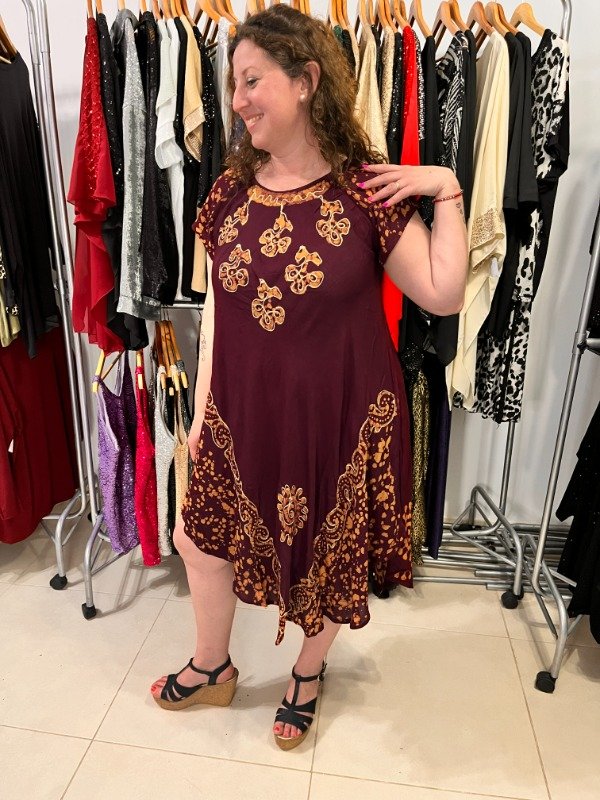 Vestido India Evase Frescos 120 cadera hasta 110 busto Bordo PROMO 23.715 TRANSF